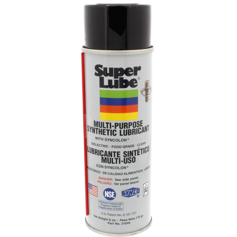 Super Lube Multi-Purpose Synthetic Lubricant with Syncolon is a multi-purpose grease in an aerosol form that is safe to use on anything that slides, rolls, swivels or squeaks. It is a synthetic, heavy-duty lubricant that provides superior wear protection. It penetrates, lubricates and extends the life of machinery and equipment. It provides excellent oxidation resistance and rust protection. NSF registered Food Grade lubricant, rated H1 for incidental food contact, meets USDA 1998 H1 Guidelines.