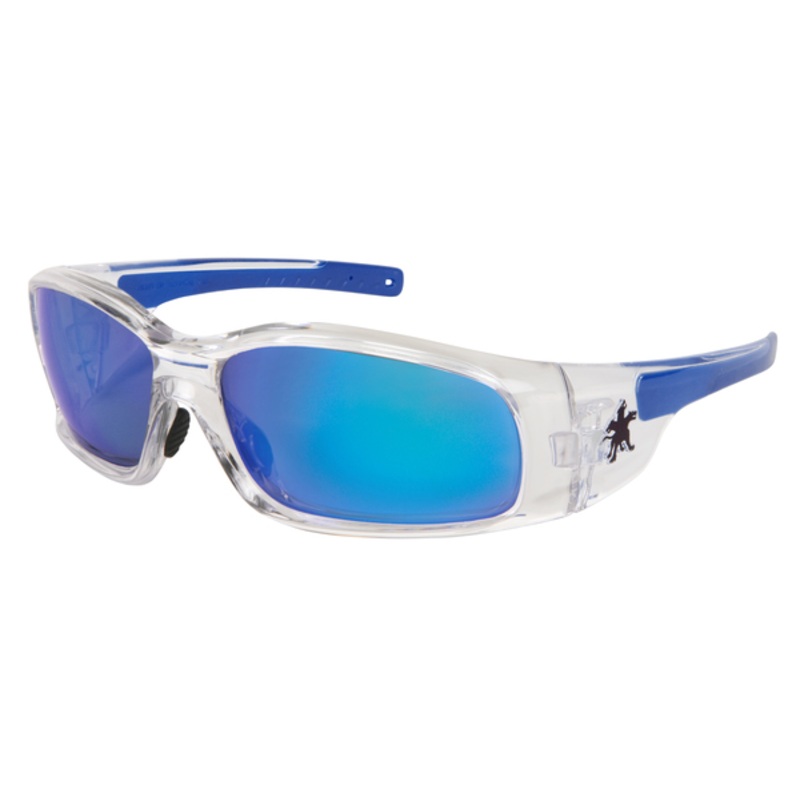 Swagger SR1 Series Clear Safety Glasses with Blue Diamond Mirror Lenses Soft Non-Slip Nose Piece and Temples