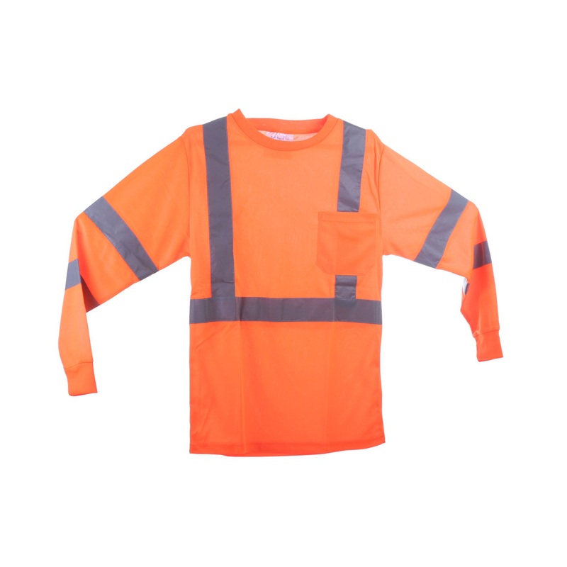 Class III Orange Long Sleeves T-Shirts 98-3500-O Size S 100% Polyester with Silver Reflectors High Visibility with 100% ANSI Fluorescent 2" ANSI Silver Reflective Stripes 1 Side Pocket