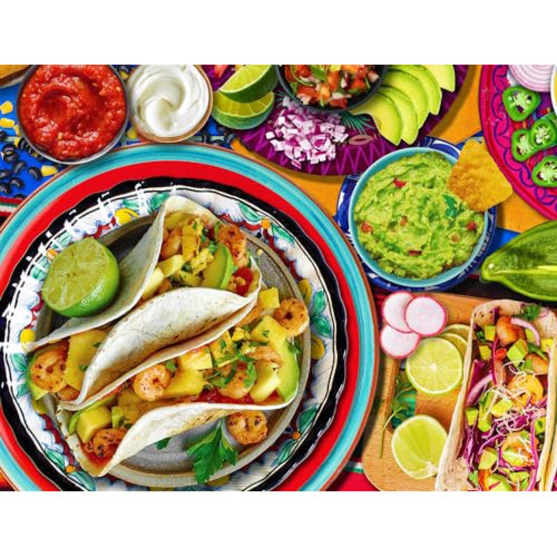 This charming and delectable Taco Table Puzzle is a colorful, culinary delight! Feast your eyes on the array of toppings and spices that create a visual fiesta. It will challenge your mind and satisfy your craving.1000 PieceAssembled Size: 30"x24"Average T
