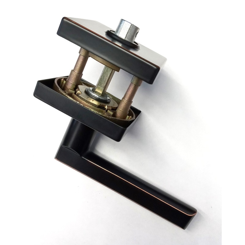 Taymor 30-D006734BRN Lever Passage Door Handle Aged Bronze Vega StyleFinish C10B+Aged BronzeConcealed screw mountsFully reversible for left and right handed doors6 in 1 adjustable latch. Drive in. Square mortise and radius cornerAdjustable backset fits 2-3