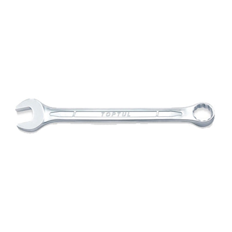 Toptul 25mm Standard Combination Spanner. Chrome Vanadium Steel Material.High torque performance as over 1.6 times as ANSI & DIN standard. Professional quality for maximum durability and corrosion resistance.Specifacations:Size: 25mmFinish: Satin Chrome