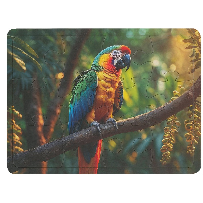 This Tropical Parrot 12-Piece Tray Puzzle CH8507 will provide fun and entertainment for your little one. It features a frame tray and a beautiful parrot sitting on a tree branch.12 pieces8 x 11 inches