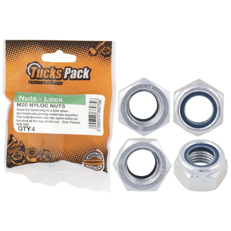 Tucks Pack M10 Zinc Plated Locknuts (20 Pack)Specification:M10 LocknutsQty: 20Zinc PlatedUse on Many ApplicationsCorrosion Resistant