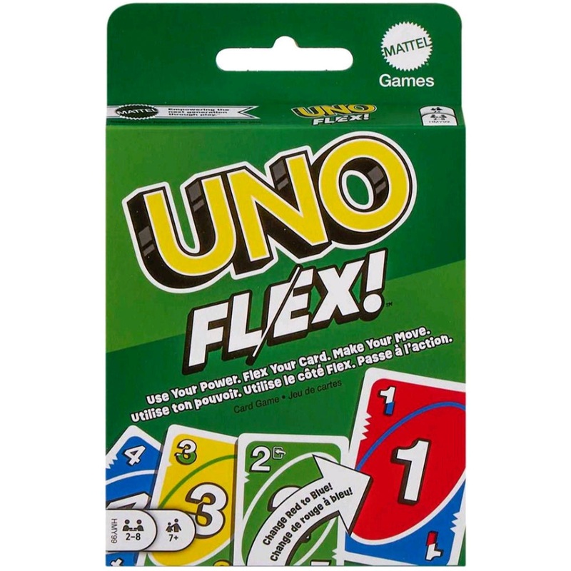 If you like the classic game of UNO, then you will love UNO Flex! It's just like the original game, but with a few intriguing twists. There are special Power Cards that allow players to change a card's color. The Draw Two cards force every other player to