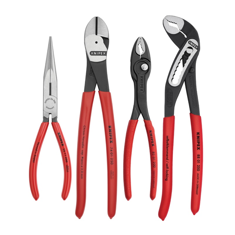 • The perfect gift for the KNIPEX Tool enthusiast. Get four of the most popular KNIPEX Pliers for the price of three – includes a FREE TwinGrip Pliers! This set includes four of the most popular KNIPEX Pliers: Long Nose Pliers with Cutter, High Leverage Diagonal Cutter, TwinGrip Pliers, and Alligator Water Pump Pliers, one of each
