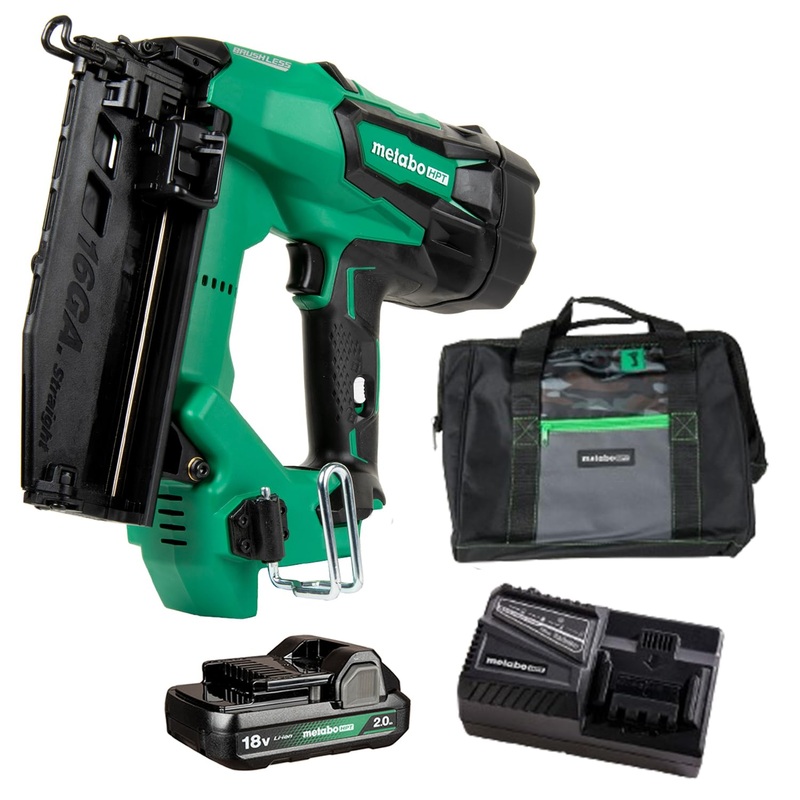 • POWER FINISH NAILER: Metabo HPT introduces the 18V MultiVolt Brushless 16 Gauge Finish Nailer, taking cordless nailing to the next level. This power tool now comes with an 18V 2.0Ah battery, featuring a fuel gauge for convenience. Metabo HPT is proud to build upon their strong pneumatic heritage and offer a professional-grade cordless option.
