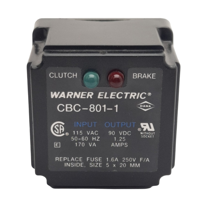 Item Condition: UsedSKU: SB-199700ST13-2-DFrom our inventory we are selling a Warner Electric CBC-801-1 Clutch/Brake, 115VAC/170VA In, 90VDC 1.25A Out, 8-Pin. Specifications:Model #:CBC-801-1 More Information: Warner Electric Clutch/Brake Control Input Vol