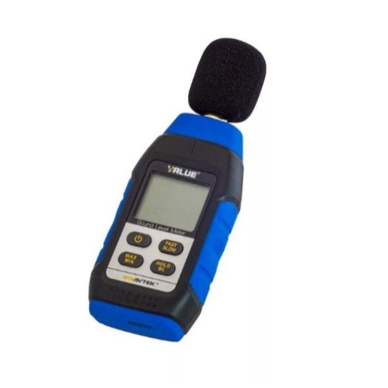 VALUE Sound Level MeterVMS1Reliable and compact noise level measuring instrumentFeaturesLarge backlit displayHigh quality capacitor-type microphoneWide measurement scope (31.5Hz - 8 KHz)Technical DataMeasurement scope: 30 - 130 dBSampling rate: Fast: 125 m