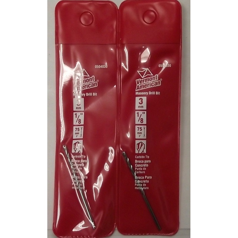 Vermont American 0504030 1/8" Hammer Drill Bit 2pcs. Length is 3" x 1-3/4" drill length Brick/block/concrete/wood Aeronca x 60 If you have a question about one of our products, please email us. We check our email regularly, and try to get questions answere