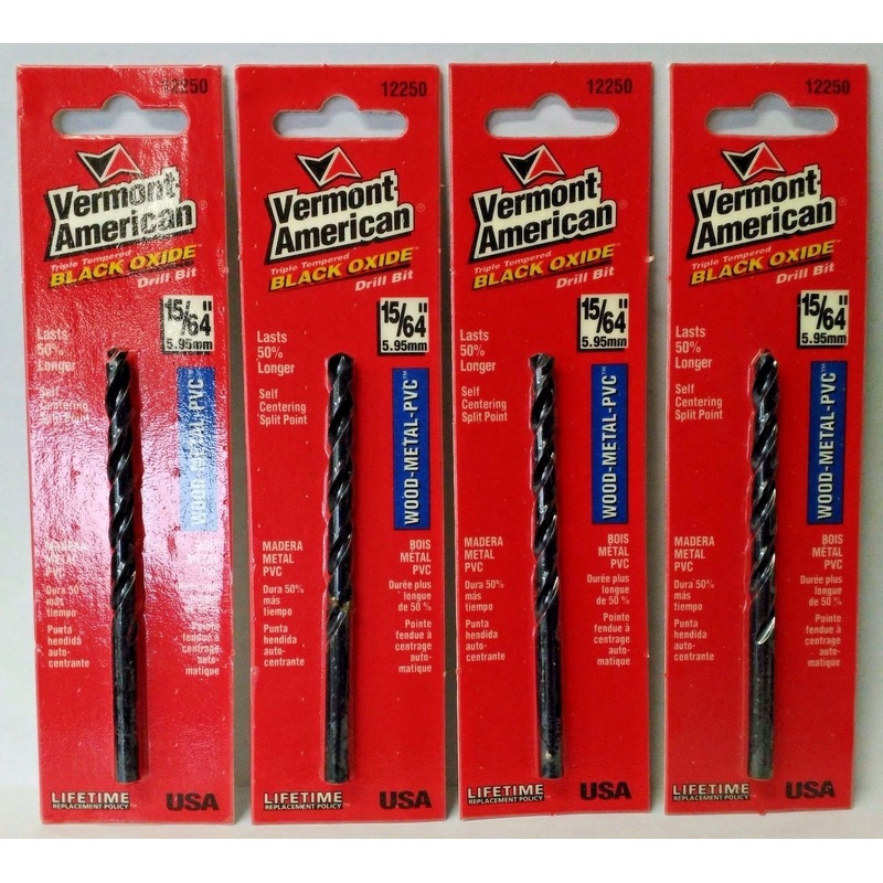 Black oxide drill bits offer superior durability and speed for most general purpose drilling applications in wood, metal and plastic. The triple tempered black oxide coating provides very high lubricity to reduce heat buildup and prolong the life of the bit.