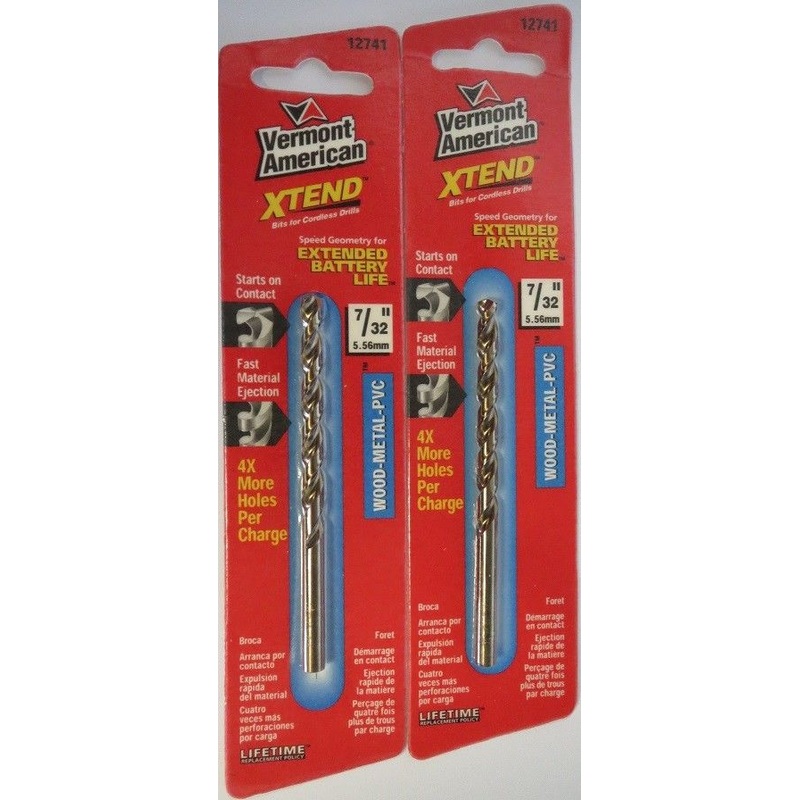 Vermont American 12741 7/32" Xtend Drill Bit 2 PacksFor wood, metal, PVCWe check our email regularly, and try to get questions answered asquickly as possible.RC 7/20/18 L 75