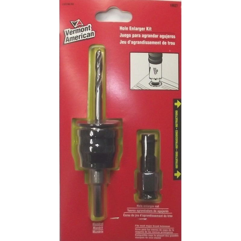 - Three Easy steps to enlarge holes clearly: 1. Attach washer 2. Attach hole saw with correct hole diameter 3. Attach hole saw that matches original hole diameter (serves as pilot bit).