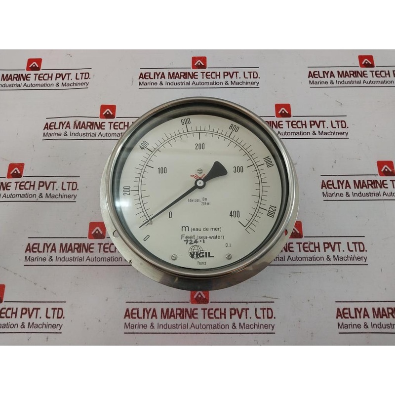 Vigil 0-1300 Feet Sea Water Level Depth Gauge 10M 20 FeetVigil0-1300 Feet (Sea-water)0-400 M (Eau De Mer) / (Sea Water)1 Division = 10M 20 Feet724.1Cl.1FranceWeight: 1.100 Kg