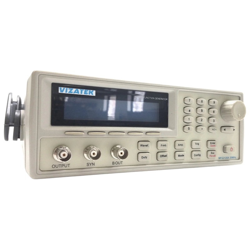 DDS with Arbitrary Waveform, full featured, menu driven direct digital synthesis (DDS) generator. Waveform changes can be made manually or via RS-232 interface. 20MHz range (sine only / square up to 5MHz). Internal AM, FM, PSK, FSK modulation. Sweep range 0.1Hz to 20MHz