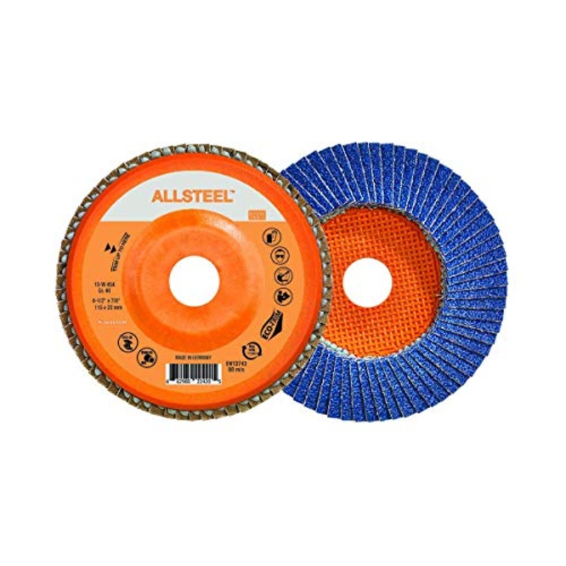 This WALTER ALLSTEEL Flap Wheel has been designed with zirconia alumina grains to make it usable for less pressure. The trimmable disc of this abrasive wheel gives it consistent performance and hassle-free use. This deburring wheel is an ideal solution for workers who work with less pressure machines. It gives smooth experience for deburring of steel. This blending wheel can be used on heavy fillet welds and it offers high removal rate. It can operate at maximum 13300 RPM to provide uninterrupted experience. The trimmable disc is good to use for finishing and heavy deburring. It provides high versatility to the flap discs.