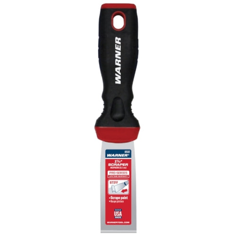 Features: Ergonomic soft grip handle designed to reduce fatigue and fit the hand more comfortably.High-quality carbon steel blades.Polypropylene with a TPE over mold.Color Coded blade flex on handle.Large hang-hole size for easy tool organizing.Chisel edge