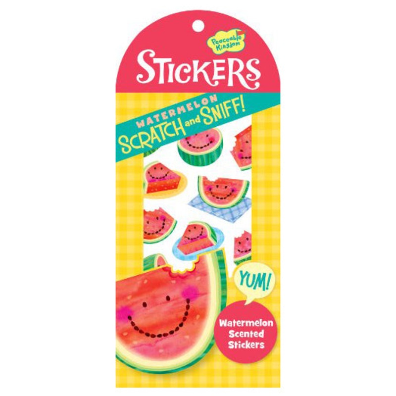 Embellish cards, scrapbook pages, graded papers and more with these sweet Watermelon Scratch & Sniff Stickers! Scratch the stickers and sniff for a fruity watermelon smell.Includes 2 sheetsSheet measures 6" x 3.75"Acid free stickersAges 3+craft supplies, P