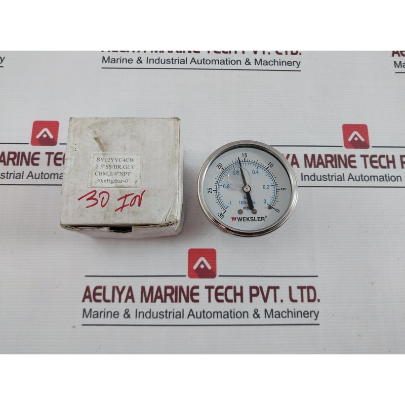 Weksler By12Yvc4Cw Stainless Steel Cased Liquid Filled Vacuum GaugeWeksler-1 To 0 Bar 100 X Kpa-30 To 0 InhgBy12Yvc4Cw2.5Ss/Br,GlyCbm,1/4NptMade In ChinaWeight: 210 Gm