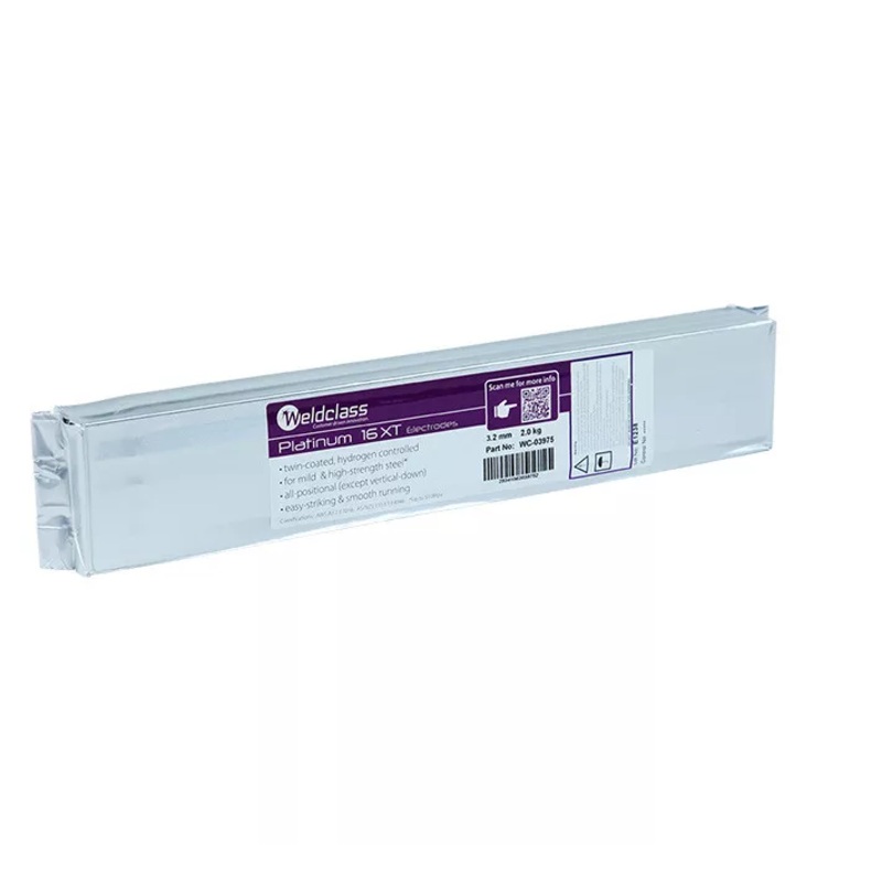 Hydrogen controlled (“low hydrogen”) E7016 series stick welding electrodes with a special Twin Flux Coating for superior arc stability – in Foil-Sealed 2KG Vacuum Packs.