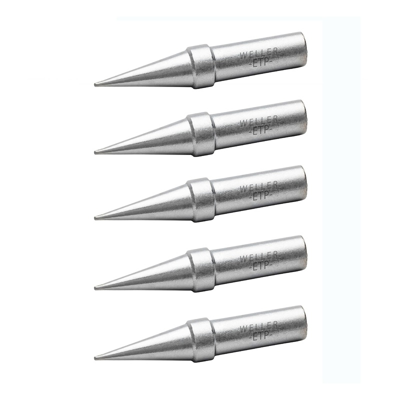 Genuine Weller WE1010 5 pack ETP Soldering Tip is a conical, 0.031" / 0.8 mm. The Weller genuine ET Series Tips are designed to be used with the WE1010 Soldering Station which is a professional station that performs high efficiency and precision soldering
