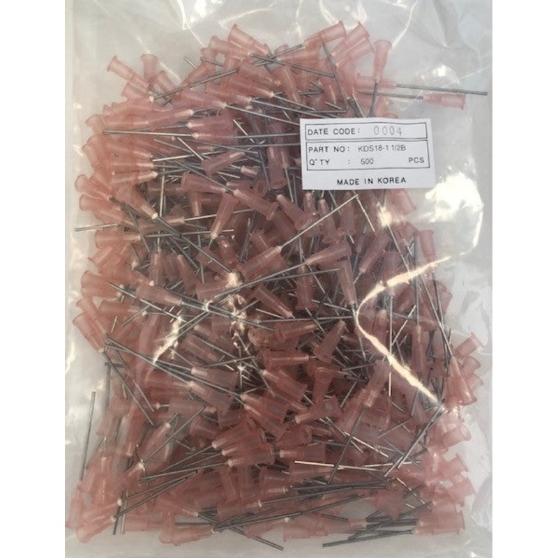 Stainless Steel Plastic Hub Dispensing Needles18 Gauge 1-1/2" length Blunt TipFits all standard Luer Lock or Luer Slip Syringes.Compatible with EFD, Nordson, Techon, PVA dispensing Systems.UV safe plastic hub with luer taper.Non-sterile, but may be sterili