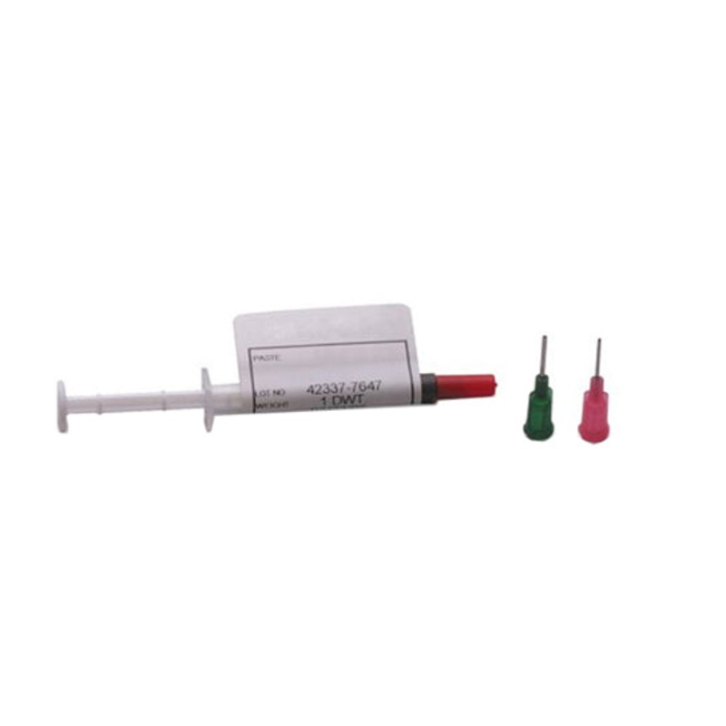 Solder pastes allow for precise application when used in soldering rope chain, hollow shells, findings, earring posts and other intricate jewelry designs. Convenient 10cc dispensing syringes contain a blend of solder powder, flux and binder. Exact amount required can be used eliminating waste and improving the appearance of the joint area. Silver solders are cadmium free. Gold solders are plumb. 1 DWT.