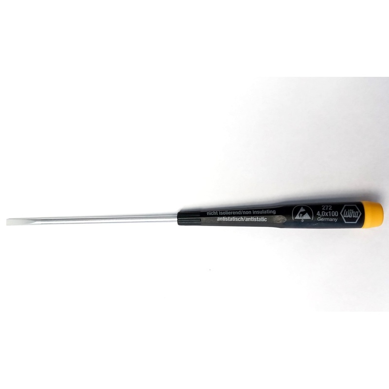 Wiha 27210 ESD Safe Precision Slotted Screwdriver 1.0 x 40mm GermanyWiha Precision ESD Static Dissipative Screwdrivers meet the requirements for tools used in static sensitive areas.Rotating Capfor precision turning and controlMolded Precision Handleof imp