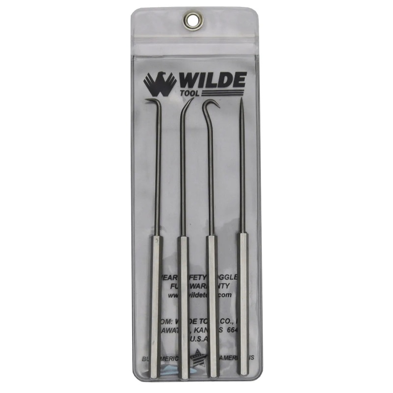 SHP 9044-PIECE HOOK AND PICK SET with VINYL POUCHOrder# SHP904MFG# SHP904/VPStraight, Hook, 45 and 90Each OAL: 6-7/8With Vinyl Pouch for StorageTo separate wires, retrieve small parts, scribe and remove O-rings.