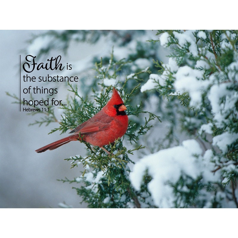 This Winter Cardinal 500-Piece Puzzle CH8566 features a pretty red cardinal in a perched on a snow covered branch with the verse Hebrews 11:1, "Faith is the substance of things hoped for..."500 pieces18 x 24 inchesCreative Homes, puzzles, regular-price