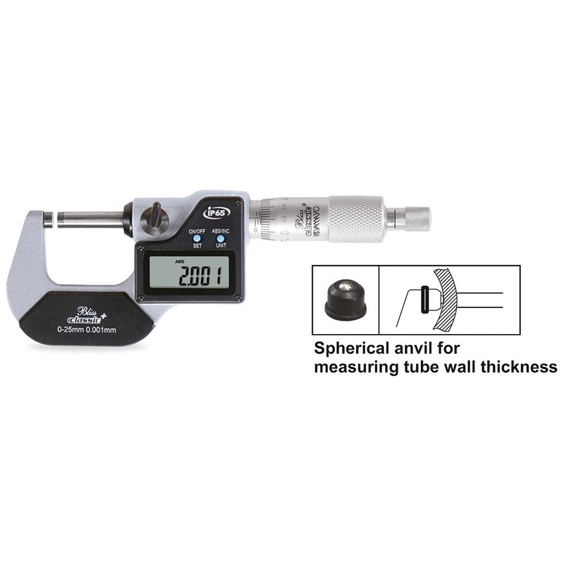 YAMAYO DIGIMATIC OUTSIDE MICROMETER 0-25 MMFEATURESLarge LCD screen.With carbide measuring faces.IP65 (Dust and Water Jet Penetration Proof).Positive locking clamp.Ratchet stop.Supplied with spherical anvil.Functions: on/off, set, ABS/INC, inch/mm conversi