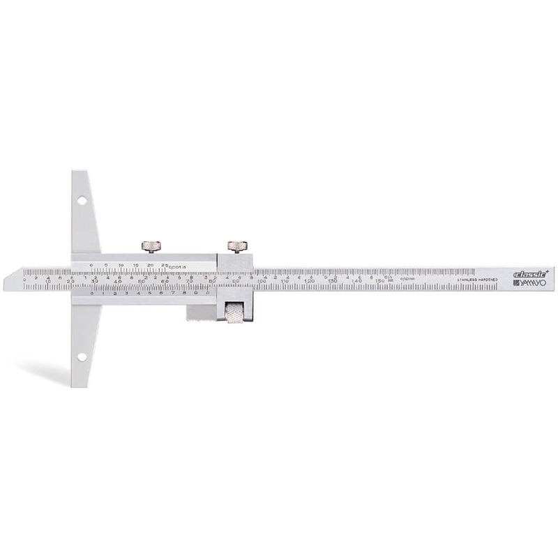 YAMAYO VERNIER DEPTH CALIPER 1000MM 4 INCHFEATURESVernier and main scale are with Satin Chrome finish for glare free reading.Provided with a fine adjustment carriage to feed the slider finely.Base and measuring faces are hardened and micro-lapped.