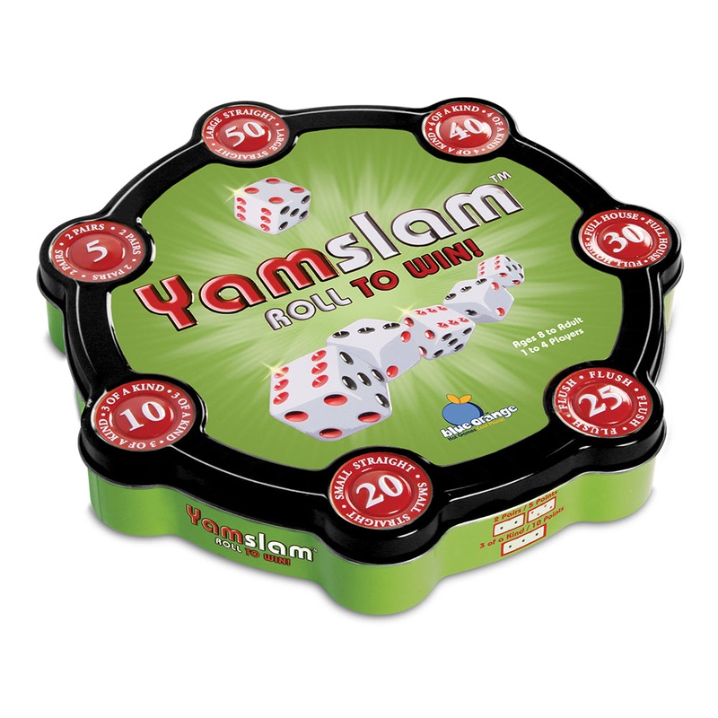 This fun Yamslam Game will be a hit at your next family game night! Let the dice roll to achieve the best combination and win the corresponding chip. Compete against the other players to grab the best chips before they run out and plan ahead for special bonuses.Contents: 1 dice tray, 5 dice, 28 chips, illustrated rules1-4 playersAges 8+