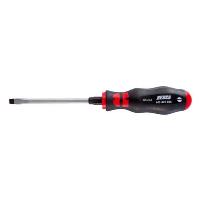 ZEBRA Slotted Screwdriver - Hexagon Blade, Wrench Adapter - 2.0 x 12.0mmSlotted Head, Hexagon blade with wrench adapterBlade: Matte chrome-platedTip: DIN 5264-A, ISO 2380, Black Point TipTip Size: 2 x 12 mmBlade Length (A): 200mm / 8 Inch Handle Length (B)