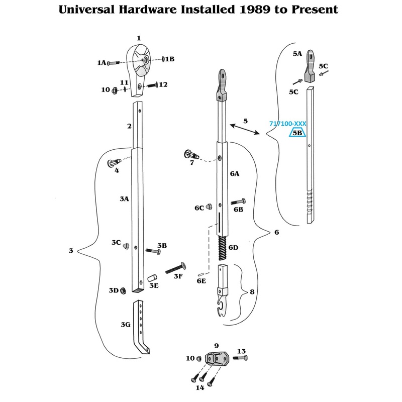 Zip Dee Satin Rafter Arm Bar for Universal Hardware – 717100-XXXfor Universal Hardware installed 1989 to present is part of 71710F/R-XXX Bright Front/Rear Rafter Arm Assemblies.